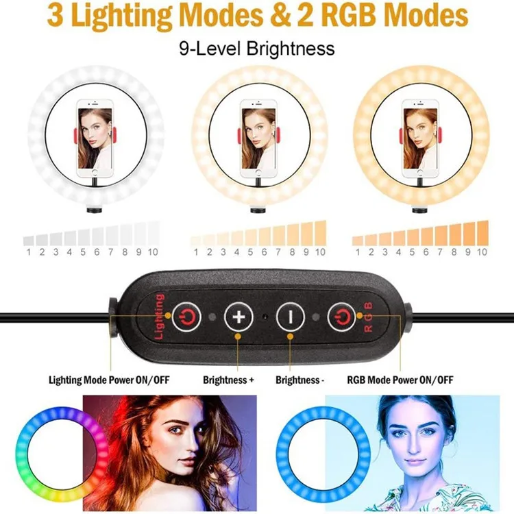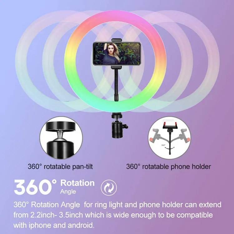 10inch RGB LED Ring Light Phone holder with Stand Flash Rainbow Color Selfie Vlogging YouTube Live Studio Accessories Fill Light